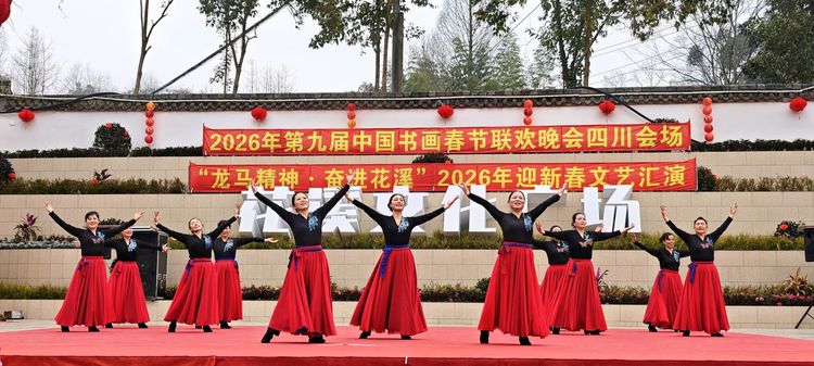 第九届中国书画春节联欢晚会四川会场 暨“龙马精神,奋进花溪”2026年迎新春文艺汇演在都江堰花溪社