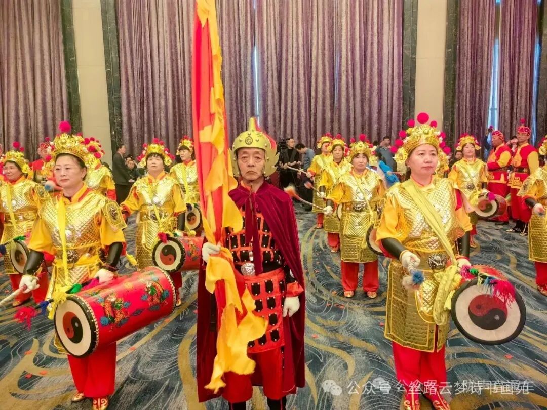 由甘肃德艺天下文化传播有限公司、兰州正德文化交流中心倾情演绎的中国书画春晚.金城盛典情景剧剧本,更是让第九届中国书画春节联欢晚会甘肃会场华灯焕彩,墨香盈室。异彩纷呈,惊艳四座,主视觉以马年吉祥意象为魂,太平鼓队、融敦煌飞天、雄狮战鼓,黄河奔腾、斩马刀法,横扫千军,大枪拳艺、威武少年,素王登临,羲皇一画开天之韵,尽显雄浑大气的陇原盛世气象。