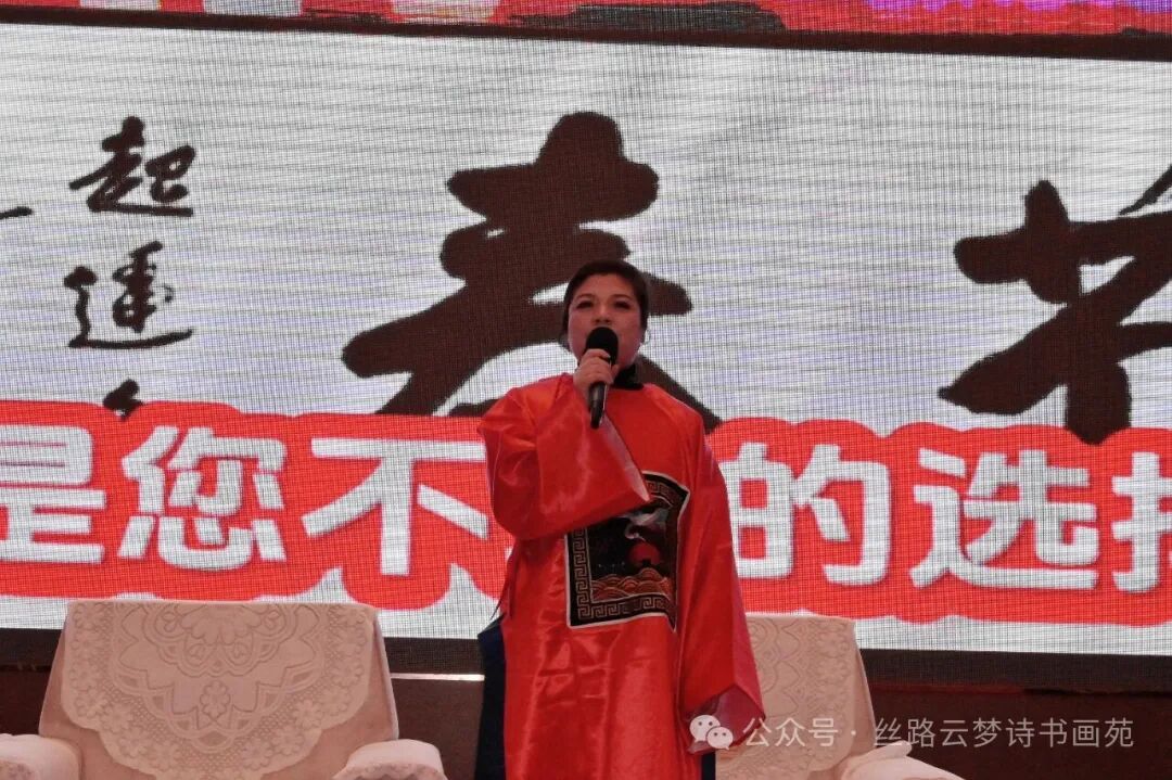 舞台之上,雅韵流转。文艺展演以“丝路文脉·陇原风情”为脉络,舞蹈翩跹如飞天落尘,模特走秀融传统服饰与当代美学,歌声婉转诉故土深情,诗词歌赋朗诵与笔墨丹青相映成趣,构成“诗书画舞共生”的沉浸式美学盛宴。甘肃省兰州歌舞剧院男高音歌唱家、西部歌王、西部花儿王张心华携手民歌小燕子西部放歌,以豪迈温婉唱响甘肃主题曲赞歌,更让晚会星光熠熠、璀璨夺目,精彩纷呈。