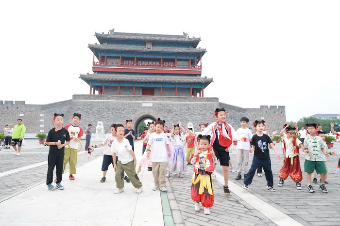 在多位国家级编导带领下,“小哪吒”们一起生动形象地融入《八臂哪吒城》传说的体验之中。