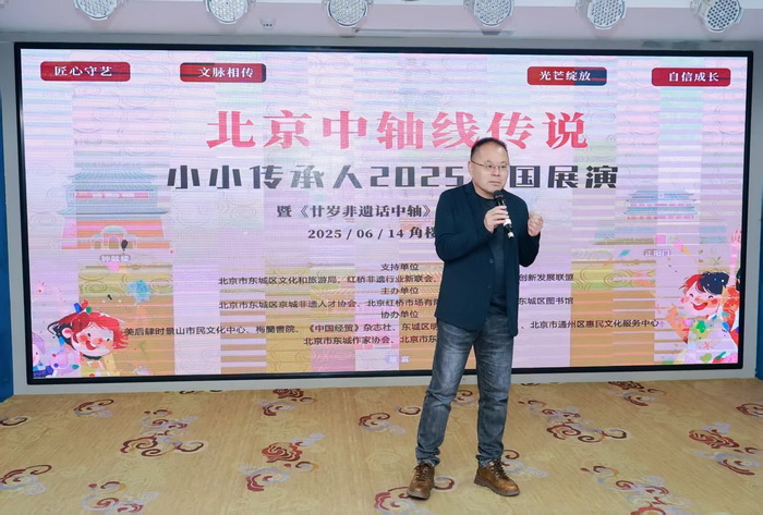 “北京中轴线传说小小传承人展演”入选2025年东城区非遗焕新专项扶持项目,由北京市东城区京城非遗人才协会、北京红桥市场有限责任公司和东城区图书馆共同主办,美后肆时景山市民文化中心、梅籣書院、《中国经贸》杂志社、东城区明城青少年活动中心、北京市通州区惠民文化服务中心、北京市东城作家协会和北京东城舞蹈家协会共同协办。展演得到北京市东城区文化和旅游局、红桥非遗行业新联会和北京京城非遗人才创新发展联盟的大力支持。