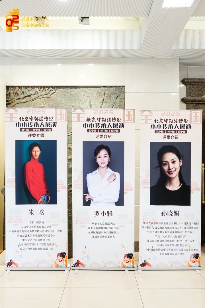 8月5日的展演以“舞中轴”作品为主,从众多报名作品中选拔出进入复选的作品进行了最终展演。中央戏剧学院舞剧系党总支书记、教授、国家一级演员、北京市三八红旗奖章获得者孙晓娟,中央戏剧学院舞剧系教授、国家一级演员、入选中国舞蹈美育家大辞典朱晗,非遗舞蹈谱系策划人、东城舞蹈家协会副主席罗小雅,北京舞蹈学院研究员、中国艺术职业教育学会等级考试委员会考官虞李娜、国家级非遗项目北京泥人张代表性传承人姚晓静,著名京味画家、传统绘画颜料配置技艺第五代传承人杨信,作家出版社副编审、《北京中轴线传说》责任编辑宋辰辰担任本次评委。