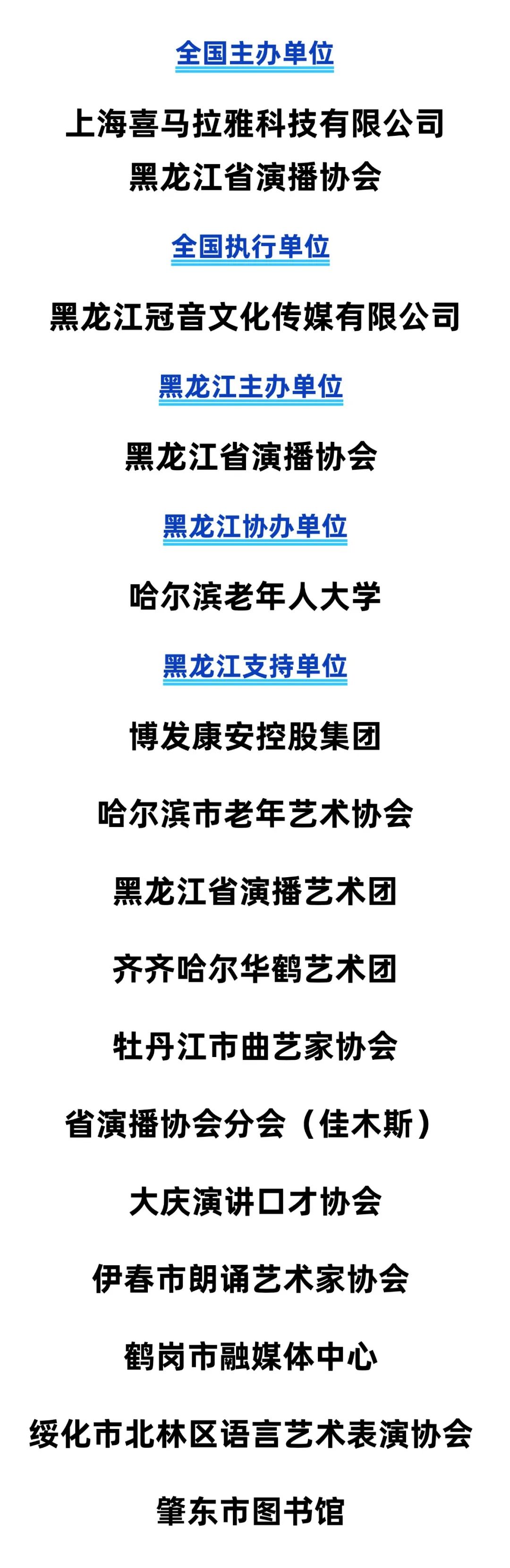1、地市级大会选手报名,当地有组委会报送当地组委会,没有组委会的报送黑龙江省组委会暨黑龙江省演播协会。