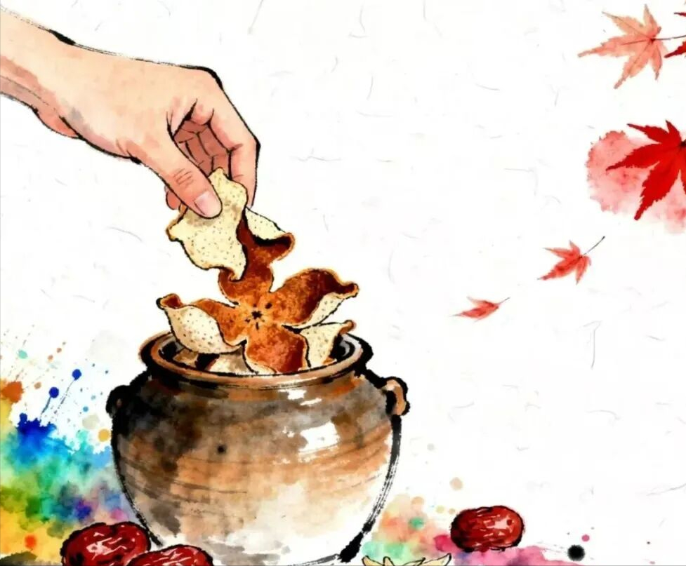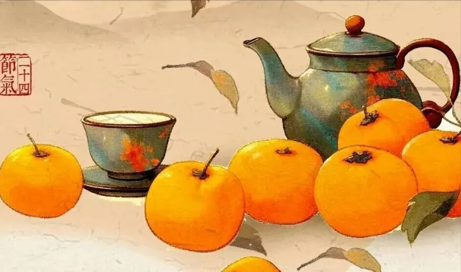 俗话说:“霜降吃丁柿,不会流鼻涕。” 民间认为霜降这天吃柿子,可以御寒保暖,补筋骨,防止感冒。此时的柿子完全成熟,皮薄肉甜,非常美味。
