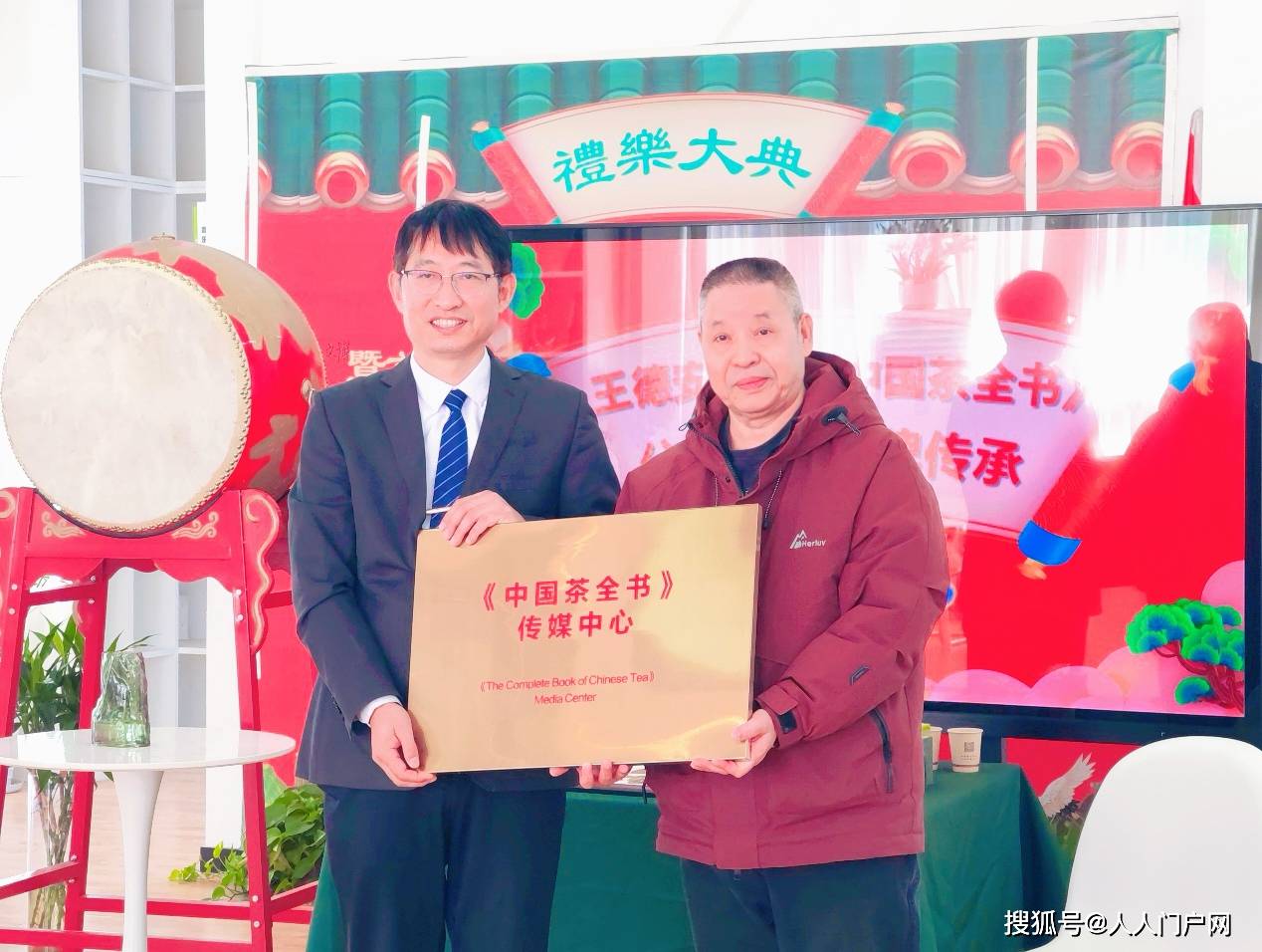 见证时刻,王如良先生首先向王德安先生献上鲜花,沙青青女士向王如良先生献花,三人共同合影留念。王德安先生为王如良先生颁发《中国茶全书》传媒中心聘任证书,执事呈上“中国茶全书传媒中心”牌子,众人共同合影,定格这一重要瞬间。
