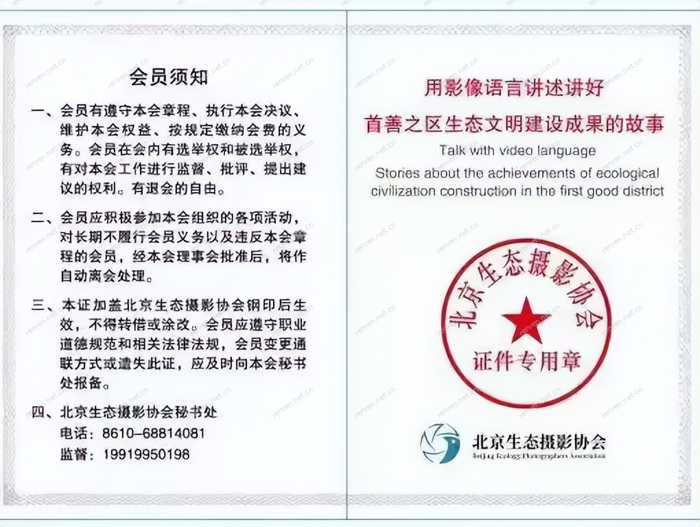 北京生态摄影协会采访证(会员证、首都生态摄影师)诚邀全国优秀摄影家及摄影爱好者申请入会