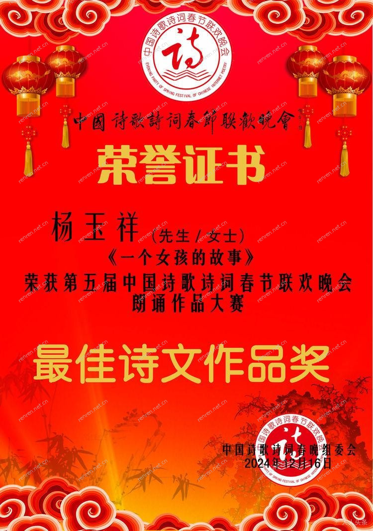最佳网络诗词奖100名:电子获奖荣誉证书。另见网络大赛通知。