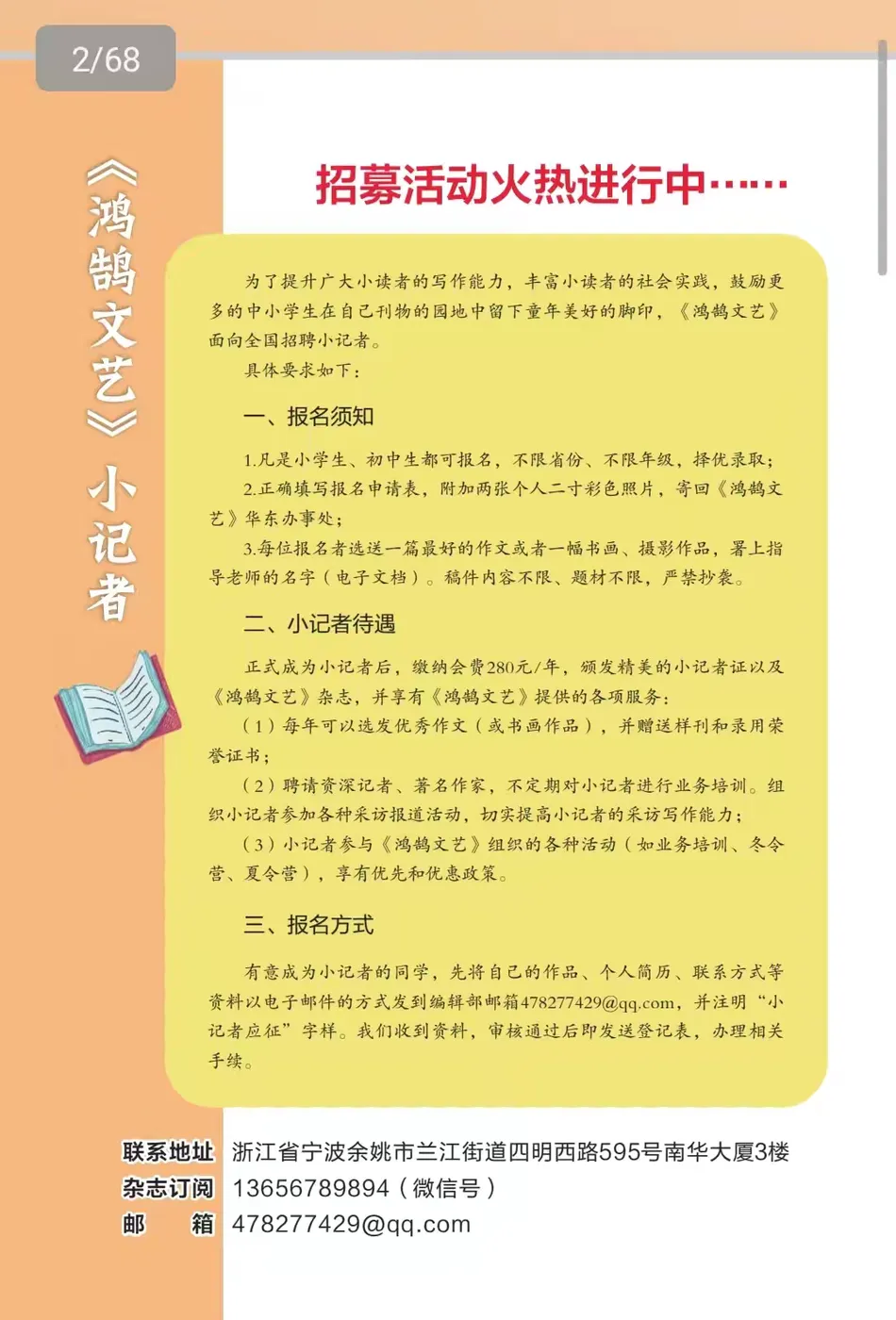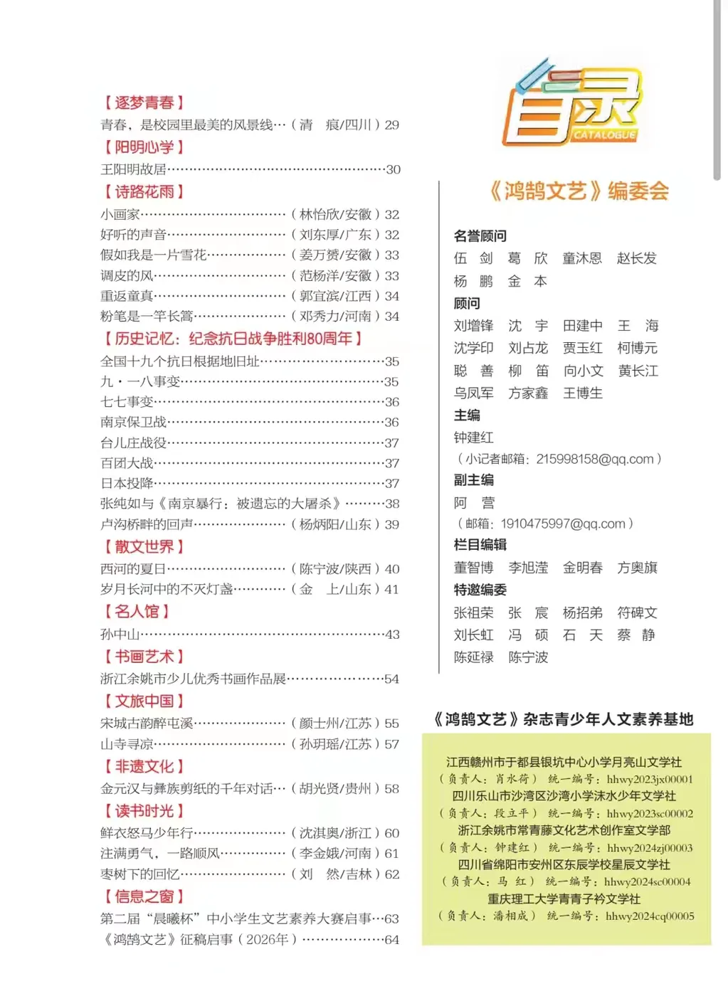 《鸿鹄文艺》征稿启事(2026年)………………64