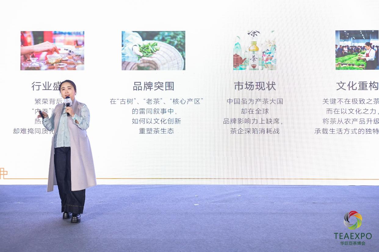 中华文化促进会茶产业工作委员会副会长、老舍茶馆企业管理中心主任王越女士则聚焦“文化赋能”,以《文化赋能茶产业:做茶不如做茶生态》为主题,提出茶产业发展需跳出单一产品思维,构建集文化传播、体验消费、产业联动于一体的生态体系,引发现场广泛共鸣。