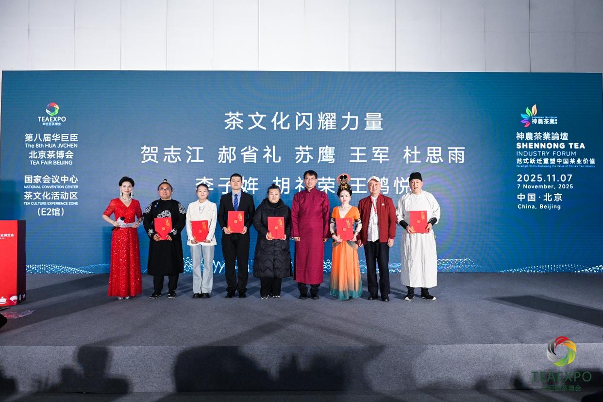 贺志江、郝省礼、苏鹰、王军、杜思雨、李子姩、胡礼荣、王鸿悦荣获“茶文化闪耀力量”称号